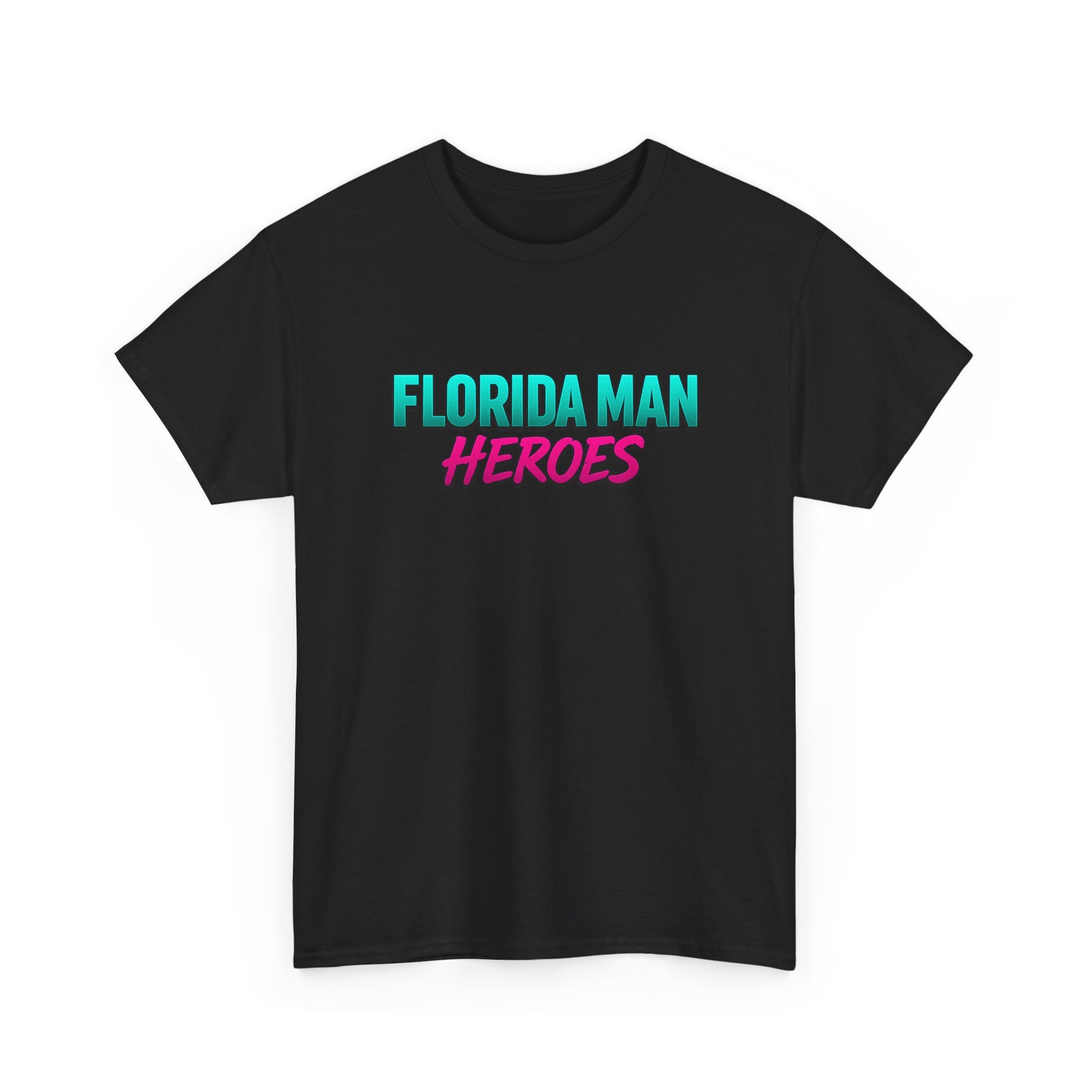 A vibrant and edgy T-shirt featuring the Florida Man Gaming mascot — a muscular gator firefighter in turnout gear with a cosmic swamp station backdrop. The design is a mix of neon colors, graffiti letters, and heroic posture, giving off a cool and unique vaporwave vibe. Perfect for fans of gaming, Florida culture, or anyone looking to make a bold fashion statement. Ideal for casual wear, gaming events, conventions, or as a standout gift for birthdays or holidays.