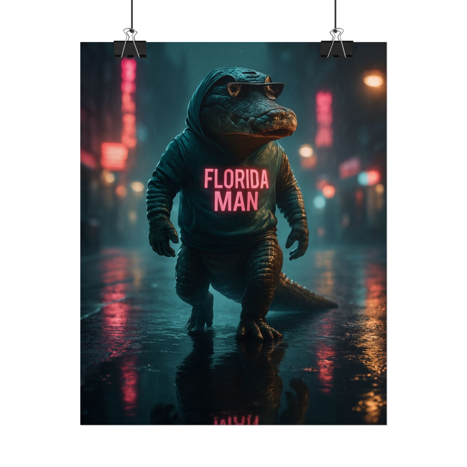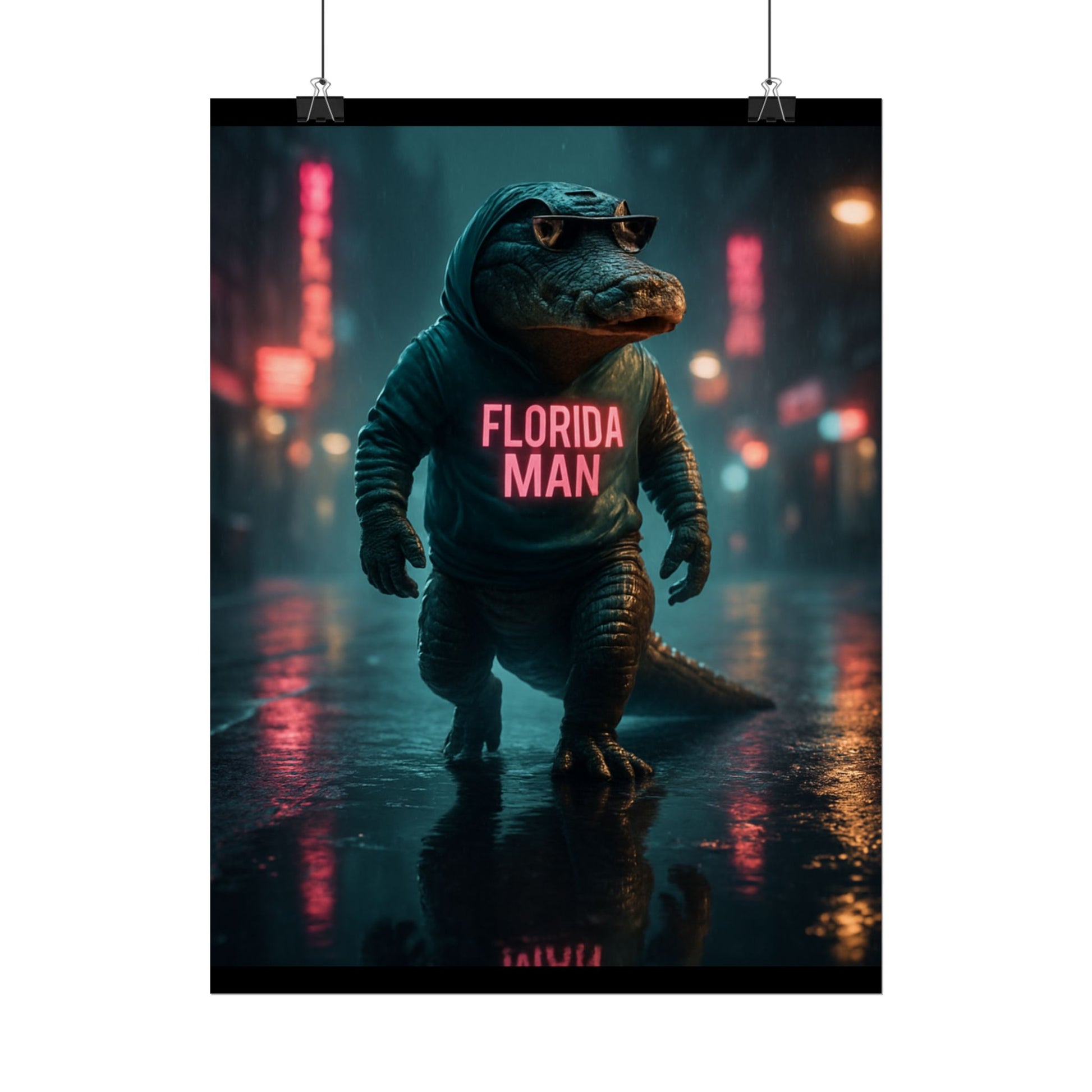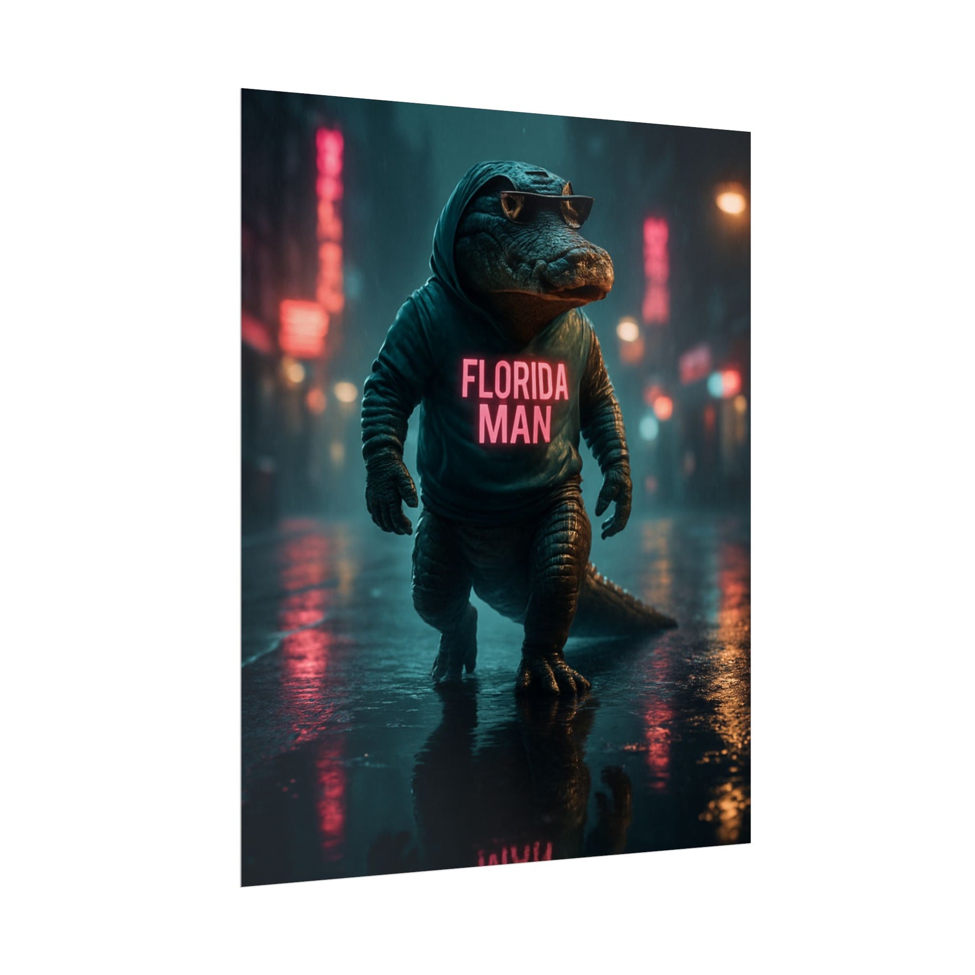 Rolled Posters - Florida Man Gaming Alligator Cyberpunk 3D Render